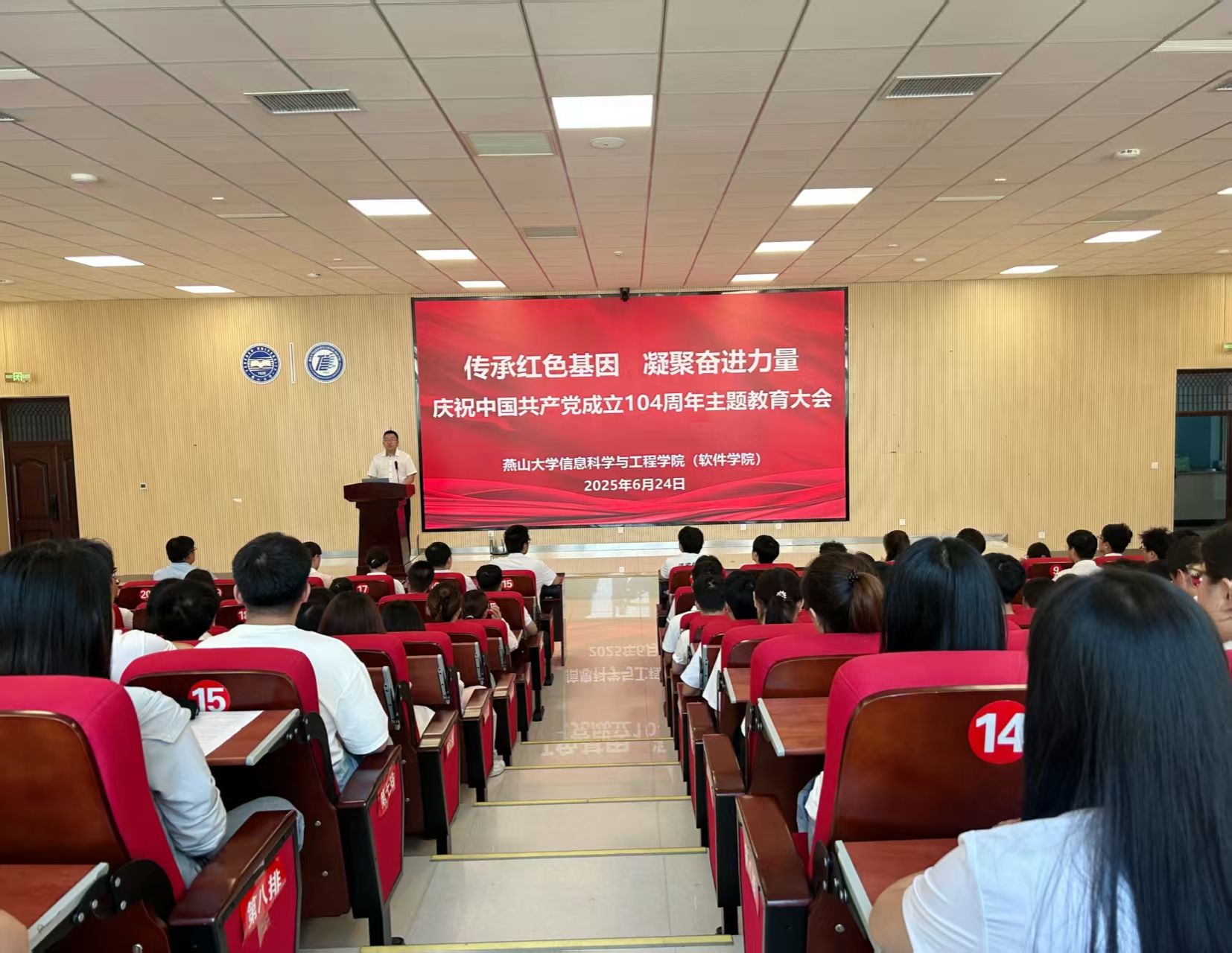 【新闻中心讯】6月24日,燕山大学信息科学与工程学院(软件学院)开展“传承红色基因 凝聚奋进力量”庆祝中国共产党成立104周年主题活动。学院领导班子成员、党支部书记、师生党员代表共计240人参加活动。活动由学院党委副书记李浩然同志主持。