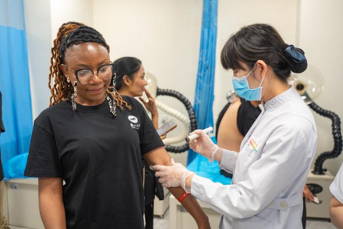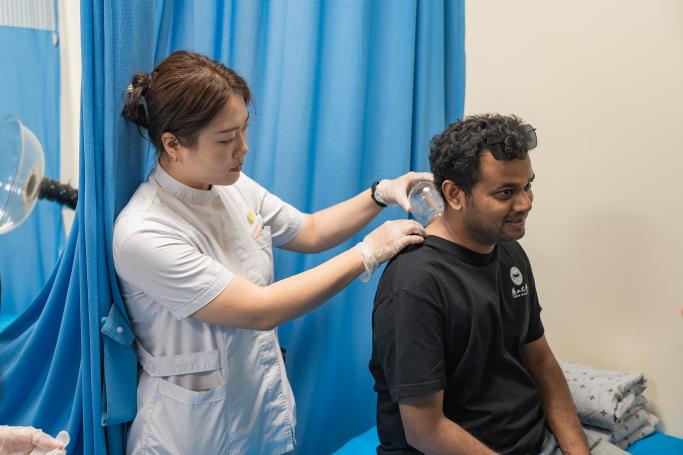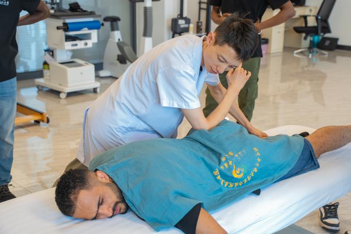 “体验中医:领略传统疗法的精妙技艺”环节,在康复科、针灸科、治未病中心,医生现场“望闻问切”,学生们亲身体验了蜡疗、推拿、针灸、拔罐、艾灸、刮痧、耳穴埋豆等传统中医诊疗手段。并在专业指导下习练八段锦,感受中医养生功法的独特韵味。