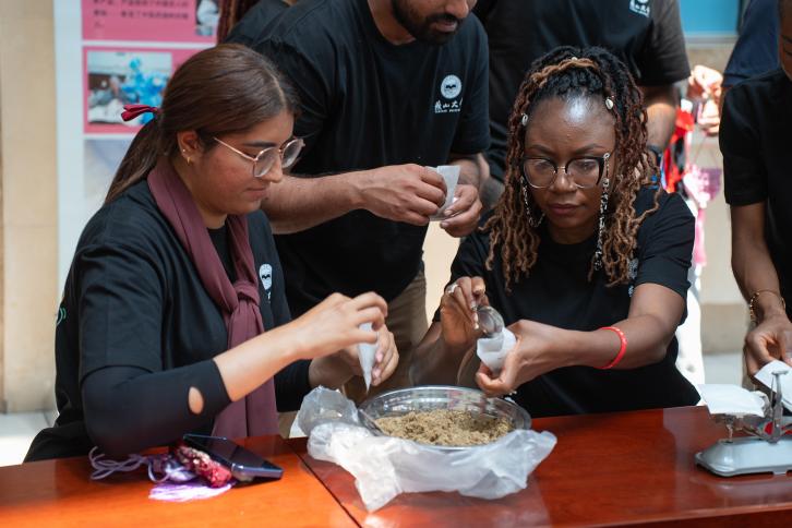 “探秘中医:探寻中医历史与本草智慧”环节,在专业医师的指导下,学生们通过近距离观察中草药,了解药材功效、亲手研磨中药、学调配中药药方、观摩煎药流程、制作中药香囊等体验活动,直观感受中医药的独特魅力。