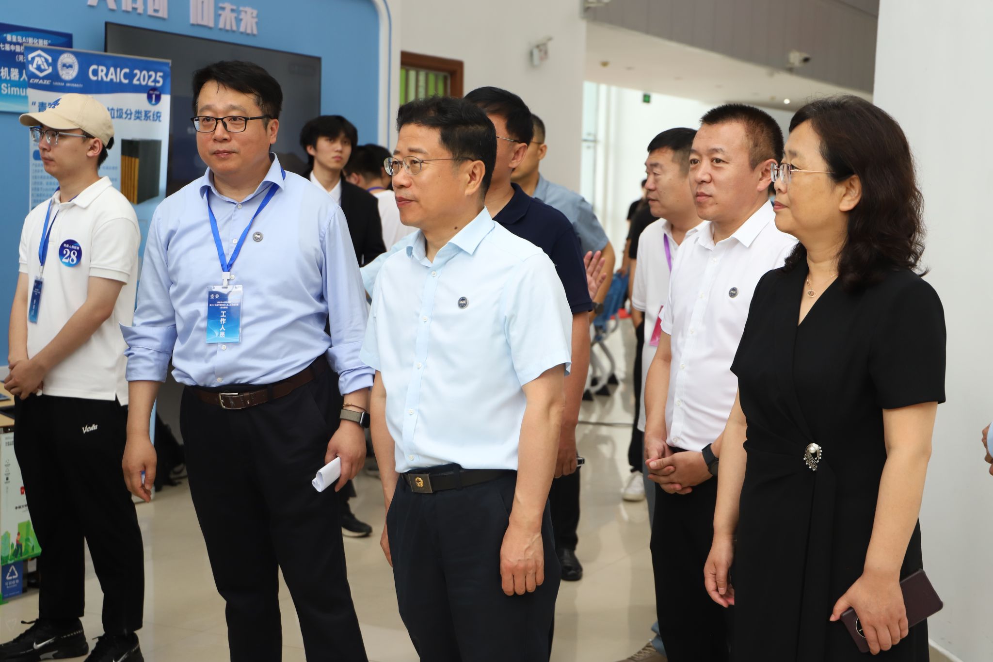 燕山大学党委书记赵险峰,燕山大学党委常委、副校长李春玲,中国机器人及人工智能大赛组委会主席朴松昊,中国人工智能学会副秘书长陈雯柏,燕山大学信息科学与工程学院院长齐跃峰,秦皇岛人工智能孵化器执行合伙人王涛,河北赛区负责人、燕山大学信息科学与工程学院教授赵逢达,西北工业大学计算机学院副院长史豪斌,燕山大学创新创业教育与指导中心副主任李德凡等领导出席活动。