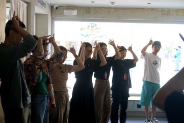 团队骨干赵芯澜、杨雨晴、赵蕊、刘晨欣均来自外国语学院刘鸿宇教授手语研究与推广应用课题组,她们既是沟通管道,更是文化转译者。手语志愿服务团队不仅为听障游客和国际游客提供精准的双语(英语/手语)引导,保障其在戏剧节期间的观演体验;更创新性举办特色手语工作坊,以“身体语言与艺术表达”为主题,引导参与者通过肢体律动传递情感、讲述故事。这种将手语艺术与戏剧精神相融合的实践,既契合戏剧节“表达与连接”的核心主旨,更借助艺术场景普及了手语的文化价值,推动社会对听障群体的理解与包容,为助力阿那亚国际戏剧节这一国内极具影响力的文化IP和区域文旅产业发展的重要引擎,实现“艺术无边界、沟通无障碍”的人文目标做出贡献。志愿团队以实际行动诠释了“奉献、友爱、互助、进步”的志愿精神,更成为高校助力地方文旅产业高质量发展的鲜活样本。