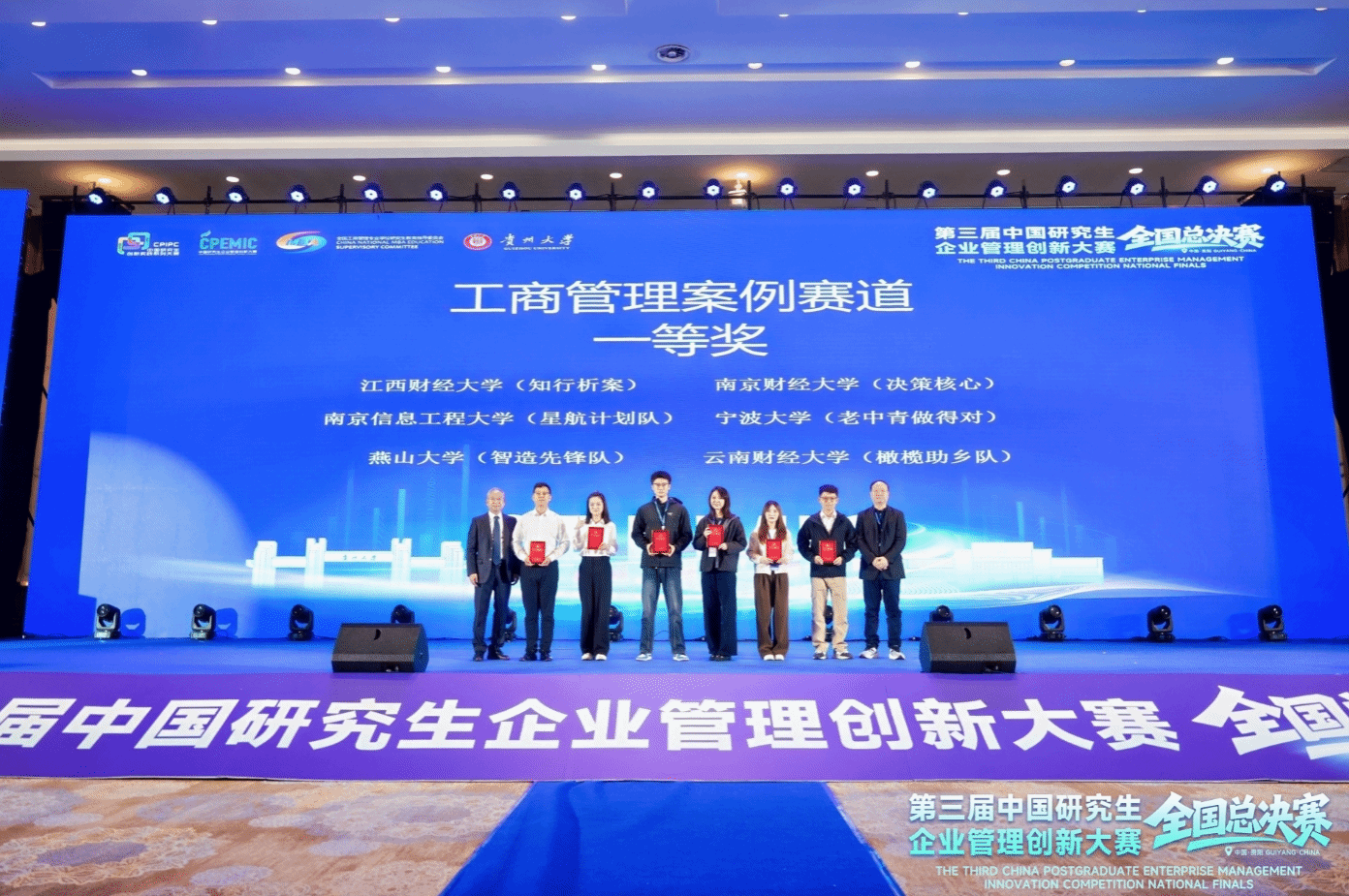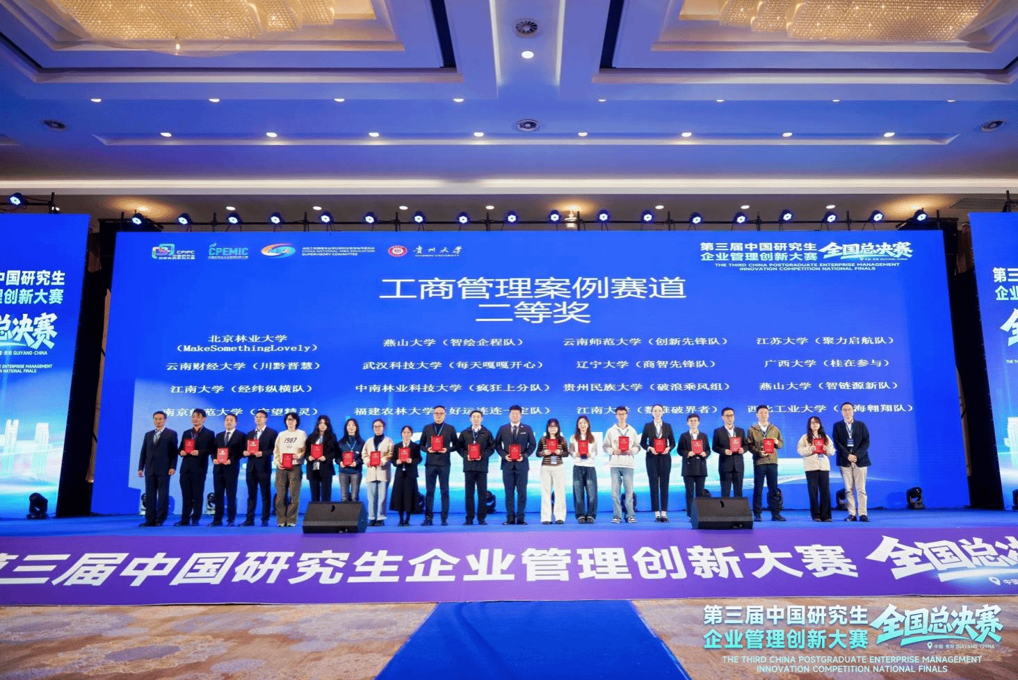 【新闻中心讯】11月9日,第三届中国研究生企业管理创新大赛全国总决赛在贵阳举行。大赛由教育部学位管理与研究生教育司指导,中国学位与研究生教育学会、中国科协青少年科技中心主办,全国工商管理专业学位研究生教育指导委员会联合主办,贵州大学承办。我校MBA代表队不畏强手、稳健发力,最终从众多强劲对手中脱颖而出,获得工商管理案例赛道国家级一等奖1项(全国共6项)、二等奖2项(全国共16项)的优异战绩,获奖的“数量+质量”居参赛院校首位。