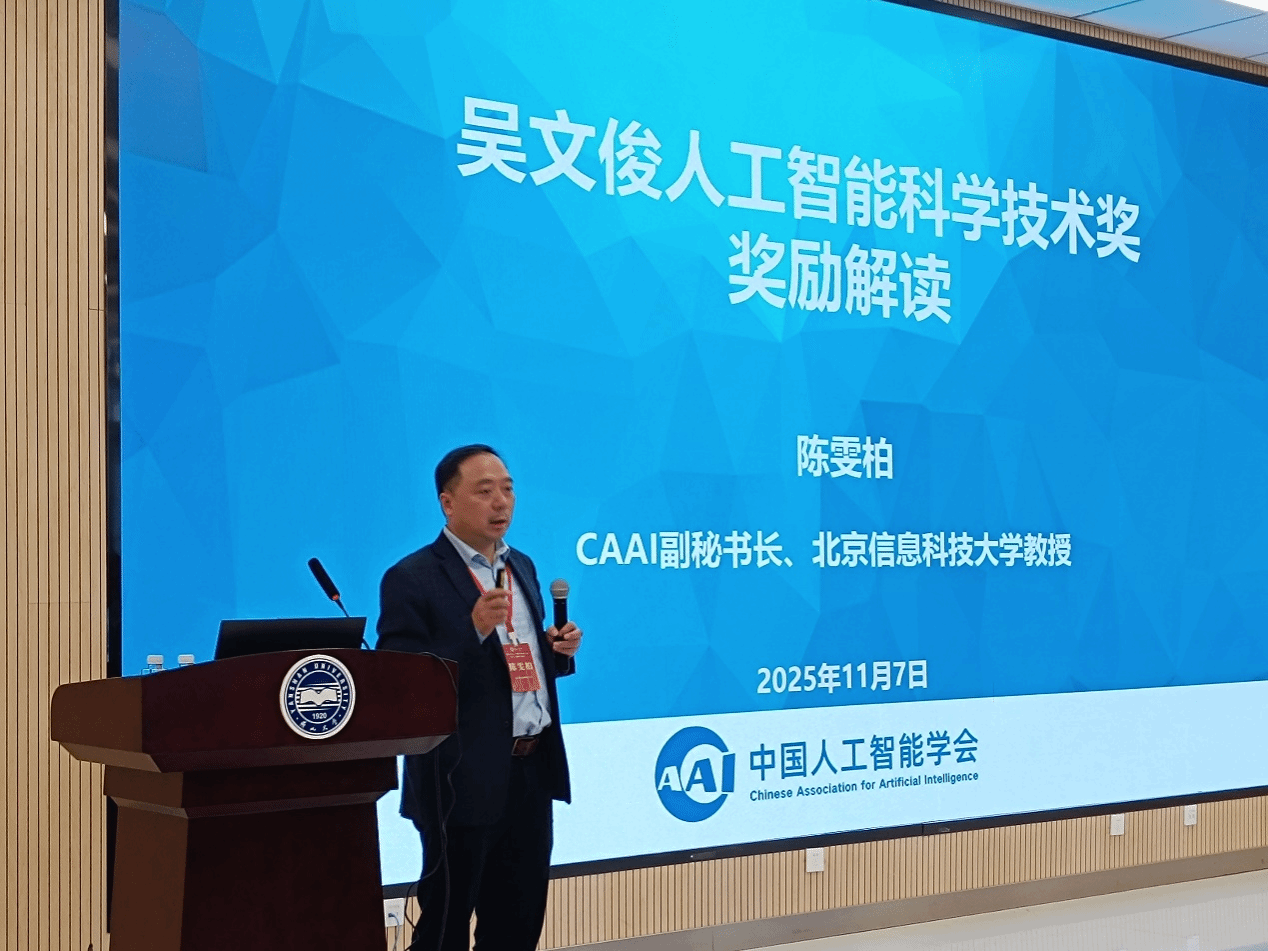 陈雯柏为北京信息科技大学教授、博士生导师,中国人工智能学会理事、杰出会员、副秘书长,中国指挥与控制学会理事、航天指控专委会委员,中国自动化学会认知计算与系统专委会委员,北京人工智能学会监事,中国教育发展战略学会人工智能与机器人教育专业委员会常务理事。在本次活动中,陈雯柏教授以《系统解读吴文俊人工智能科学技术奖》为题,系统解读中国人工智能领域的最高荣誉——吴文俊人工智能科学技术奖,报告全面介绍奖项的设立背景、权威地位、多维度设置及全链条人才激励体系,结合近年获奖案例分析AI前沿热点与国家战略需求,说明奖项提名评审流程及CAAI成果评价工作,并交流 CAAI 激励计划与项目基金申报情况。
