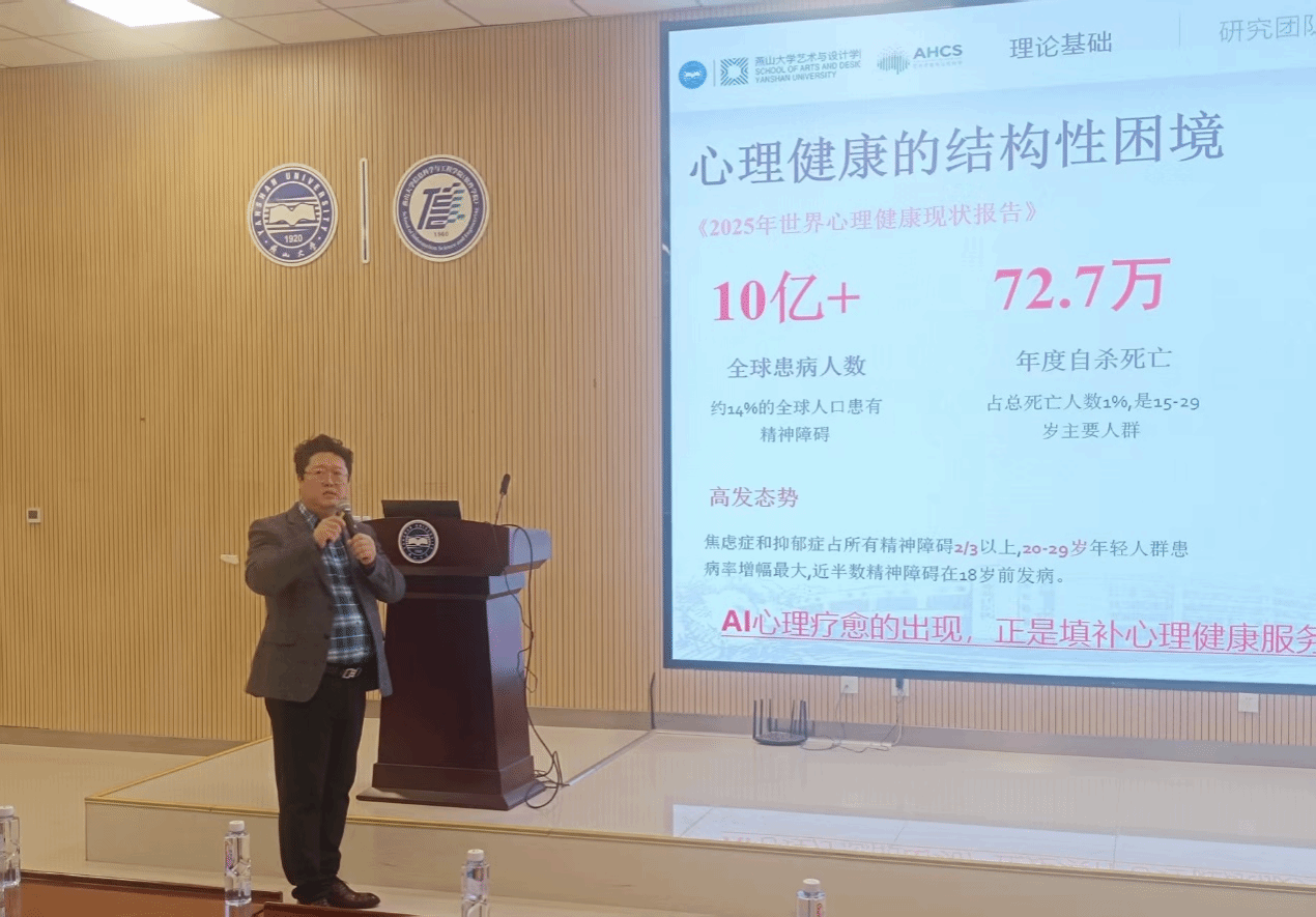 许秋健为燕山大学艺术与设计学院教授、博士生导师,国家艺术基金评审专家,韩国大邱加图立大学音乐学院特聘教授、博士生导师,中央音乐学院高级访问学者,全国心理学协会医学与哲学专委会委员,中国音乐家协会会员,燕山大学艺术疗愈与认知科学研究中心主任。在本次活动中,许秋健教授以《基于AIIM理论与量化声学特征的音乐疗愈智能体》为题,展示了基于AIIM理论与量化声学特征的音乐疗愈智能体研究,该研究聚焦情感交互模型构建与效能,AI 与计算神经科学融合推动音乐疗愈从经验艺术转向数据驱动的智能心理疗法,其在情绪障碍干预等领域疗效显著。