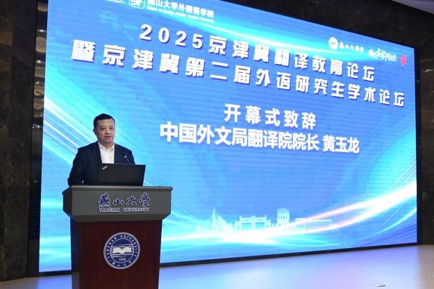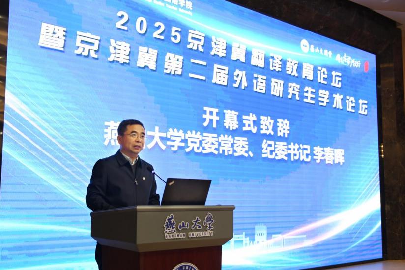 【新闻中心讯】12月13日,2025年京津冀翻译教育论坛暨京津冀第二届外语研究生乐竞体育在线论坛在燕山大学举行。论坛由河北省高等学校外语教学研究会指导,燕山大学外国语学院承办,天津蓝奥教育科技有限公司、福州译国译民集团有限公司、上海凌极信息技术有限公司、燕山大学研究生院、社会科学处协办。中国外文局翻译院院长黄玉龙,天津外国语大学原副校长王铭玉,燕山大学党委常委、纪委书记李春晖出席开幕式并致辞。外国语学院院长王林海主持开幕式。来自国内30多所高校、研究机构和语言服务企业的近200名专家学者、师生与会,聚焦新时代翻译教育高质量发展,谋划区域协同育人新篇章。
