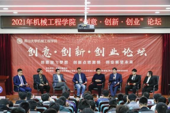 上海灵钥机械设计有限公司总经理周静辉、锋云资本CEO王清疾、河北新天科创新能源技术有限公司高级技术经理李荣、创新创业教育与指导中心副主任宋俊杰、燕山大学机械工程学院院长彭艳、党委书记董国疆、副院长姚建涛以及相关系主任、教师代表出席了此次论坛。