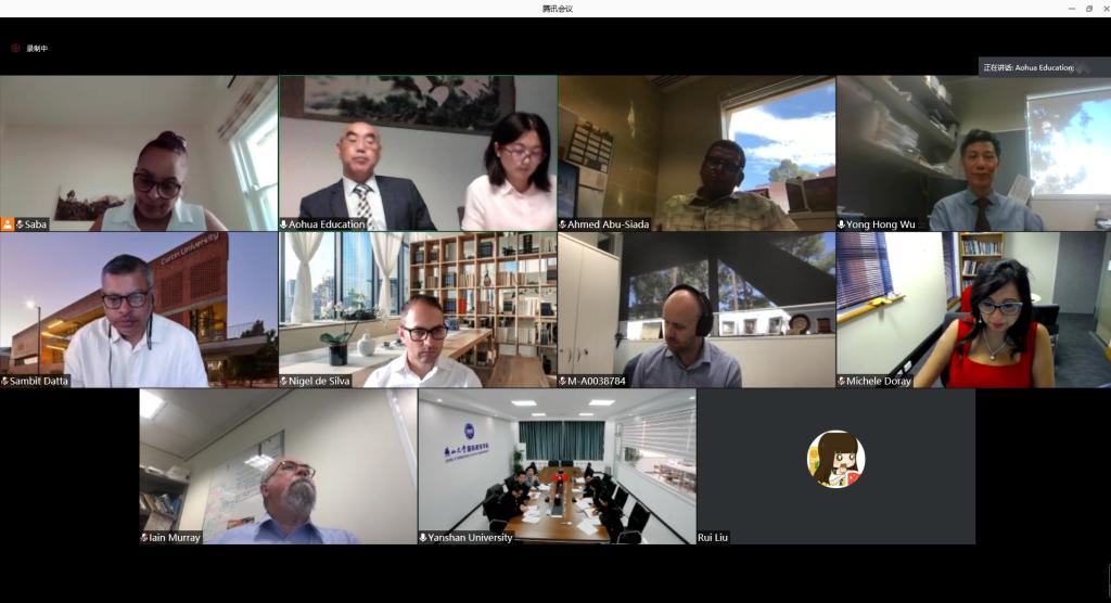 【新闻中心讯】3月10日,燕山大学与澳大利亚科廷大学中外合作办学项目联合管理委员会第四届年会在线上召开。澳大利亚科廷大学理工学部国际事务部长Sambit Datta、理工学院教学部长Chris Rawson、电气工程计算机及数学科学学院副院长Professor Iain Murray、理工学院杰出教授Yong Hong Wu、电气工程系主任Ahmed Abu-Siada、国际部,跨国教育和伙伴关系主任Nigel de Silva、国际部国际伙伴关系顾问Saba Amanuel,澳华国际董事长张生权以及我校国际合作处、电气工程学院、经济管理学院、国际教育学院相关负责人参加会议。会议由国际教育学院副院长张文莉主持。