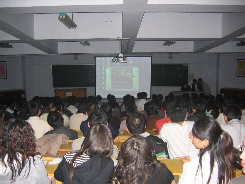 由于课程安排的原因,部分同学没有及时看到10月15日的党的十七大开幕会直播,针对这一现象,机械工程学院安排了此次活动。同学们观看的热情很高,有许多甚至提前20分钟就到场了。录像开始后,同学们都聚精会神的观看,当宣布大会开始、唱国歌时,同学们都自觉起立并高唱国歌,会场气氛热烈、严肃。尤其是开幕式放映到胡锦涛同志代表十六届中央委员会所作报告时,同学们都积极作笔记,会场上不时响起热烈的掌声。