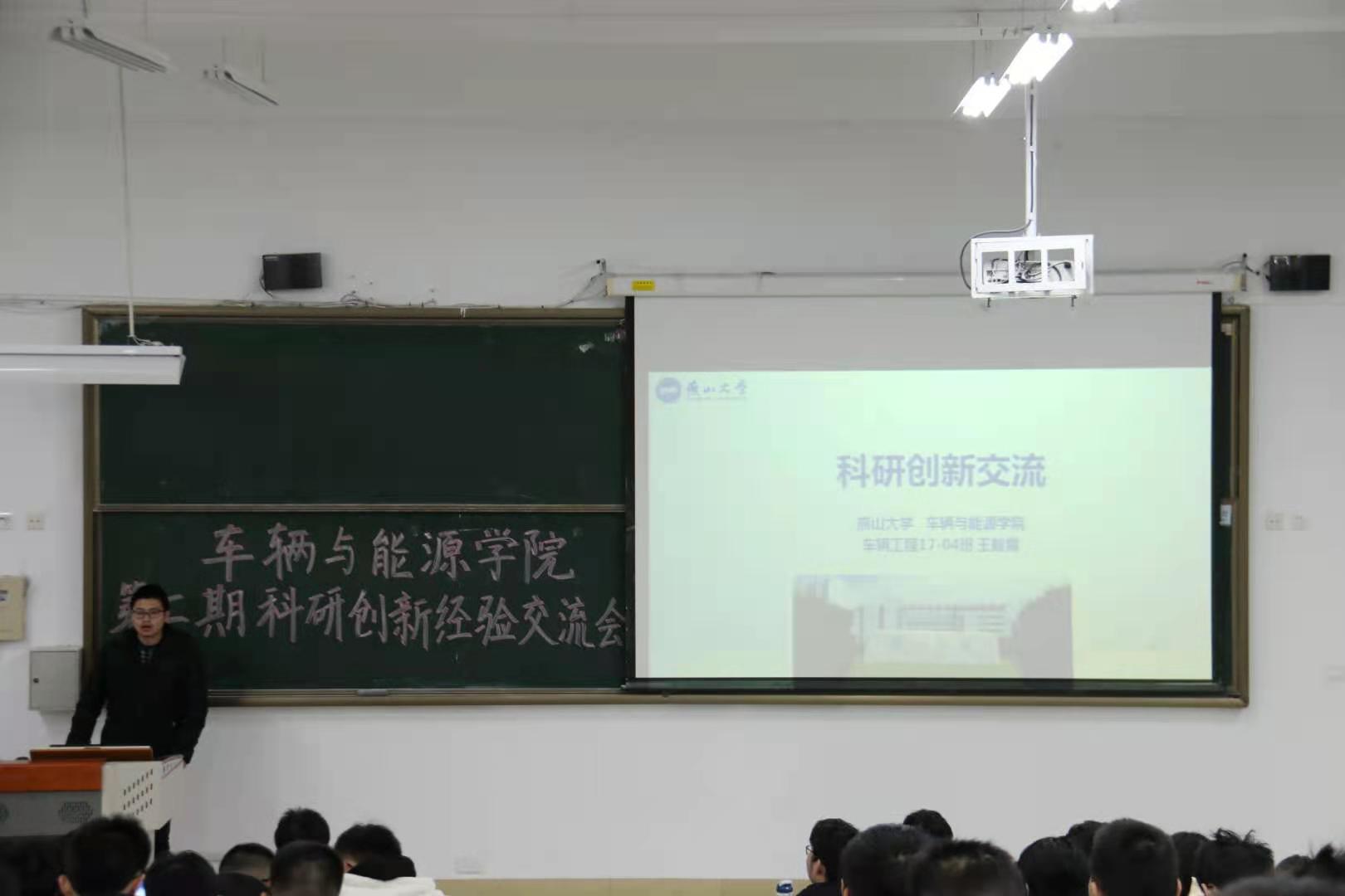 【新闻中心讯】2020年12月4日下午19:00,车辆与能源学院在东校区第四教学楼309室举办第二期科创经验交流会。17级车辆工程4班王毅霄、17级车辆工程(卓越计划)1班杜云浩作经验分享,20级辅导员冯海龙老师出席,20级车辆工程专业、车辆工程(卓越计划)专业全体本科生参加。