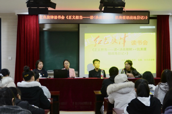 【新闻中心讯】11月5日晚7:30,由马克思主义学院主办,马克思主义研究生会承办的第六十一期“红色旋律”读书会在燕山大学人文馆M502室举行。本期主题是《正义担当——读< 决战朝鲜>< 抗美援朝战地日记>》,由马克思主义学院王新华、包巍和任文启老师主讲。