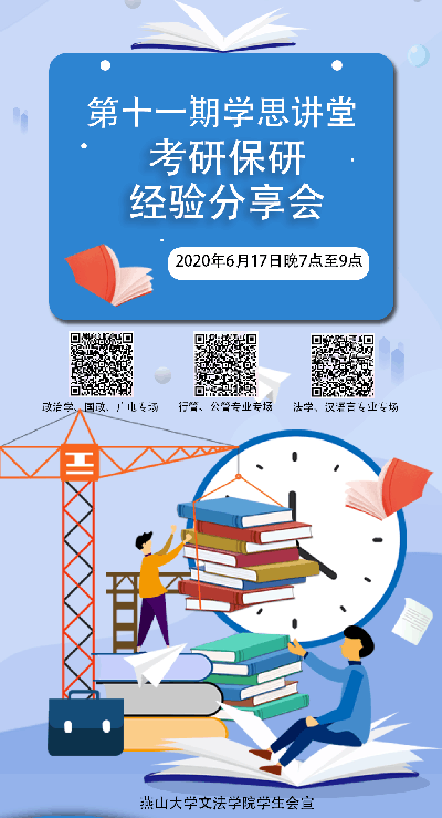 【新闻中心讯】6月17日晚上7点,文法学院通过群直播形式在线上举办第十一期学思讲堂暨考研保研经验分享交流会。本期学思讲堂邀请到了文法学院成功保研或考研的13位优秀学生代表担任分享嘉宾,与同学们分享考研保研经验心得。