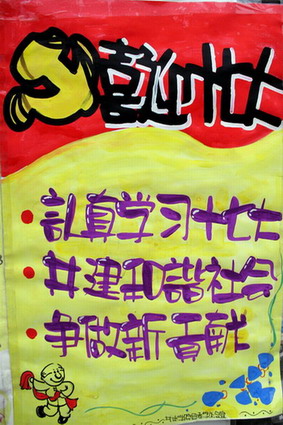 海报展表现了同学们结合自己的专业优势来宣传十七大的精神,也反映出弘扬民族精神的热情,为带动广大同学深入学习十七大精神带了好头。(编辑 白林秋)