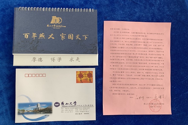 邮寄给研究生支教团成员的新年贺信和百年校史台历