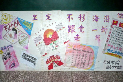 在《“我的”十七大》征文活动和宣传画大赛中,全院学生上交作品百余篇,作品触及十七大前后我国在各个方面取得的成果,体现了爱国主义、集体主义和社会主义思想,充分表达了同学们在党的领导下建设和谐社会的决心和坚持中国特色社会主义道路的信念。各团支部还制作了大量主题为十七大精神的手抄报,并定时定期展出,内容覆盖经济、政治、文化、环境等各个方面,充分显示了同学们的爱国热情。