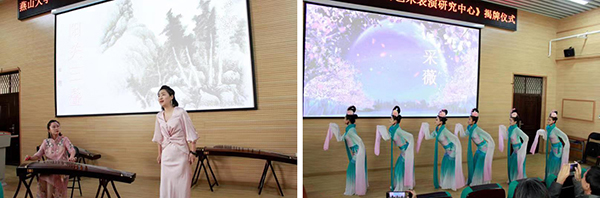 艺术与设计学院音乐系师生代表进行了国学经典舞台艺术表演,展示了古筝与古诗词艺术歌曲演唱《阳关三叠》、古筝重奏《春江花月夜》、舞蹈与国学经典展示《采薇》等三首作品。