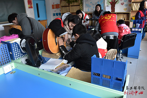 志愿者教孩子弹吉他