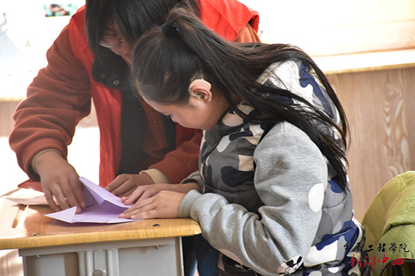 志愿者教孩子折纸