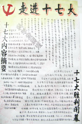 大赛过程中,同学们结合自己的专业优势,用一份份手抄报来宣传十七大精神,不仅让同学们深刻地认识了“十七大”的宗旨,而且也提高了同学们的文化内涵与修养。(编辑 朱可嘉 李永亮)