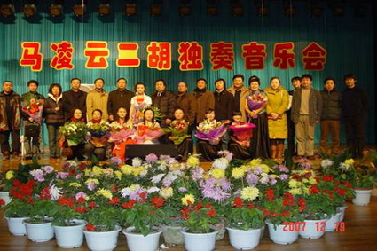 【新闻中心讯】2007年12月19日晚,艺术学院青年教师马凌云在大学生活动中心举办二胡独奏音乐会。光临本场音乐会的嘉宾有秦皇岛广播电台副台长李海松先生、秦皇岛报社副总编李守森先生、秦皇岛市音乐家协会主席曹振中先生、副主席杨葆光先生、秦皇岛市群众艺术馆馆长兼书记田国安、副馆长韩永斌先生、河北科技师范学院音乐系副主任程学勇老师等业内人士。校纪检委书记潘洪江、招生处处长宋国森、艺术学院党委书记滕国生书记、副院长陈国强、副院长姚远、以及音乐系老师参加了本场音乐会。