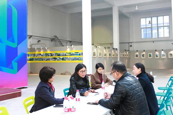 吕雪松、袁旭梅一行首先参观了艺术与设计学院“《风景写生》课程师生作品展”,孙利简单介绍了《风景写生课》的基本情况。随后,吕雪松、袁旭梅一行与学院领导就我院“设计学智库”建设情况和未来发展规划进行了座谈。