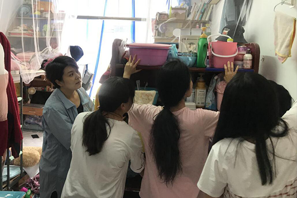 6月11日,两位老师走进学生宿舍,耐心指导学生整理、收纳内务,并对各个宿舍的格局和布置提出相应建议。经过老师的专业指导,宿舍面貌焕然一新。