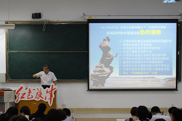 【新闻中心讯】6月27日晚7:30,由马克思主义学院主办,马克思主义研究会承办的第一百四十期“红色旋律”讲坛在东校区第四教学楼309室举行。本期讲坛的题目是《中美关系与世界大变局》,由马克思主义学院魏黎波老师主讲。