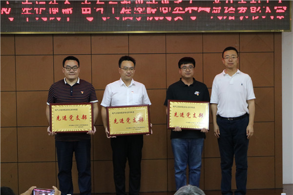 【新闻中心讯】7月4日15:00,“不忘初心、牢记使命”电气工程学院党委七一总结表彰大会在电气馆A楼101室举行。校党委常委、副校长任家东,学院党委书记侯培国,院长卢志刚,副院长漆汉宏、华长春,党委副书记、副院长刘立伟出席大会,学院各党支部教工及学生党员代表参加了大会。大会由学院学生科科长张玉华主持。