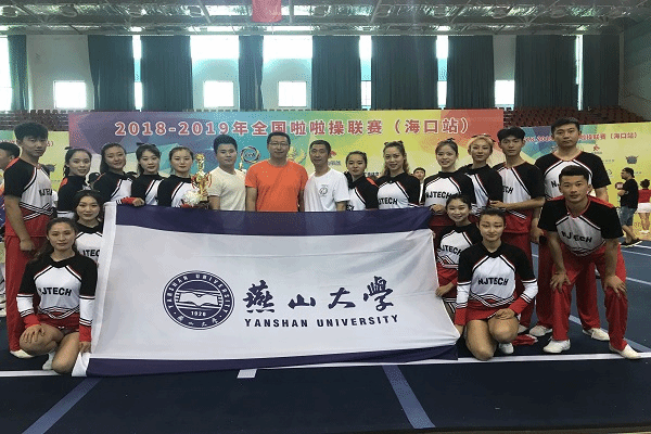 【新闻中心讯】近日,2019年全国啦啦操锦标赛在海南大学体育馆举行,本次比赛由国家体育总局体操运动管理中心、教育部学生体育协会主办,全国啦啦操委员会承办,全国1000余名运动员参加了本次比赛。我校啦啦操队在公开青年乙组技巧规定动作、校园花球规定动作两项比赛中表现突出,获得了冠军和亚军,我校啦啦操队由体育学院副院长赵猛担任领队,李晓辉、何燃燃老师担任教练。