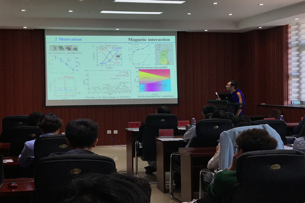 在特邀报告环节,学院材料物理系专任教师翟昆老师以《Pressure effect on spin driven multiferroicity in a Y-type hexaferrite》为主题,进行了英文专题交流汇报,翟昆的高水平乐竞体育在线报告引起了参会师生们的热切关注,同学们深深地感受到翟老师缜密的思维和严谨的科研态度。在讨论时间里,大家纷纷就相关问题进行提问,翟老师耐心地进行了详细解答,气氛十分热烈。
