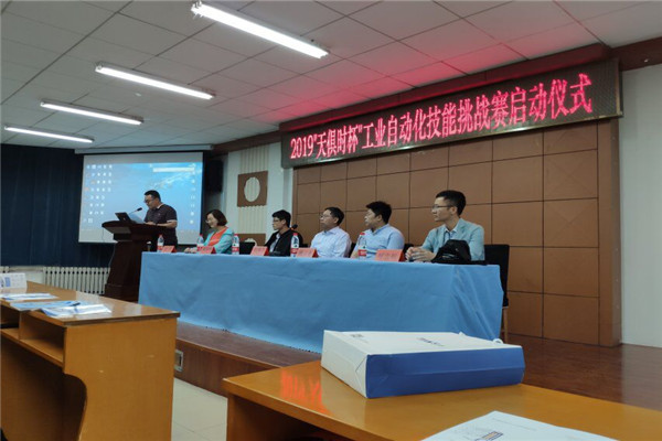 【新闻中心讯】5月23日晚7时,电气工程学院2019年“天俱时杯”工业自动化技能挑战赛启动仪式于西校区电气馆A楼101室举行。河北天俱时自动化科技有限公司副总经理高瑞珠、人力资源部副部长张彦,电气工程学院自动化系主任刘福才、副主任魏立新及教师呼忠权出席了仪式。仪式由学院团委书记梁明伟主持。
