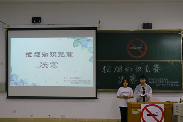 【新闻中心讯】5月27日晚8点,由燕山大学文法学院团委主办,水滴公益行动队和文法学院科学技术协会共同承办的文法学院第一届控烟知识竞赛在东校区第四教学楼308室举办。