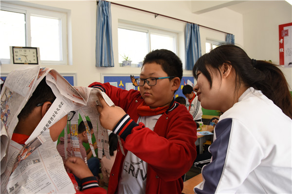 毕业班党员带领四年级学生利用废报纸制作创意时装