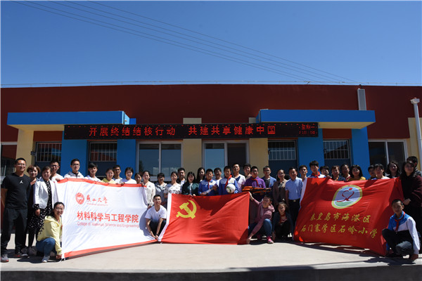【新闻中心讯】5月20日,为庆祝中华人民共和国成立70周年,提升毕业生党员勇于担当、服务群众的能力,充分发挥大学生党员的先锋模范作用,同时配合毕业班的教育活动,为毕业班学生留下更美好的大学回忆,材料科学与工程学院本科生第一党支部的毕业班党员在“双导师”--党支部书记王亦晨和毕业设计导师陈晨两位老师的带领下,赴石岭小学进行“爱心温暖你我,材华筑梦希望”爱心支教活动。