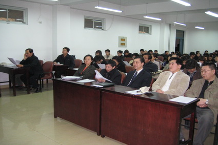 赵教授首先向大家详细介绍了燕山大学的总体发展现状、近期目标及实现途径,他以数据分析的方式将我校大学排名现状与对策分析和近两年来文科建设的工作进展清晰地展现给了大家。赵教授还针对我院论文收录总体水平、教师科研产出率、科研立项水平的成倍增长局面,布置了2008年文科的科研任务。