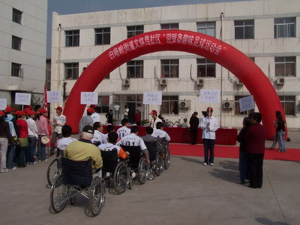 在开幕式上,残疾人代表、志愿者代表、文体里社区负责人先后发言。在社区群众为大家表演了欢快的舞蹈《好日子》之后,比赛正式开始。