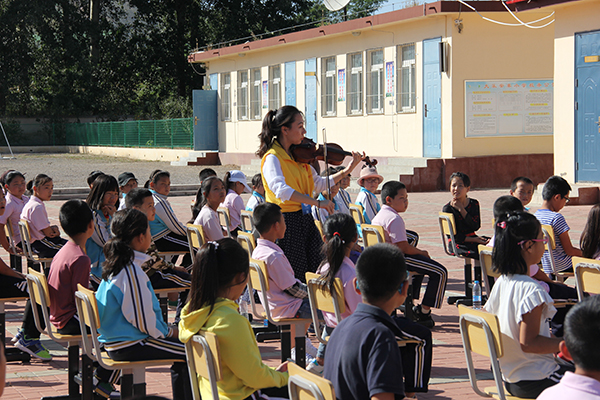 志愿者位小朋友表演小提琴独奏