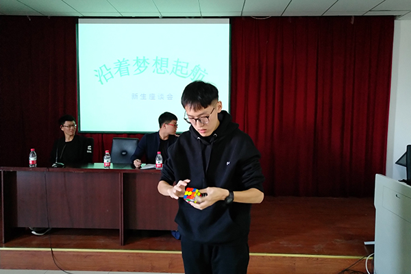 一等奖学金和专业第一这些荣誉好像就是为陶志禹准备的,上大学以来这些荣誉从未与他擦肩而过,像河北省大学生数学竞赛一等奖,河北省大学生物理竞赛一等奖,mathorcup数学建模挑战赛三等奖,三好学生,优秀团员等等称号和荣誉好像只是为了证明陶志禹是个好学生,最终被推免至中科院物理所凝聚态物理方向攻读研究生学位。谁也没有想到这样一个大家眼中的优等生竟然还是个玩的高手,三阶魔方在他手中犹如琴弦上跳动的乐符,飞速旋转,在场的人看得眼花缭乱,他玩与学的极致思想,深深打动了在座的每一位同学。