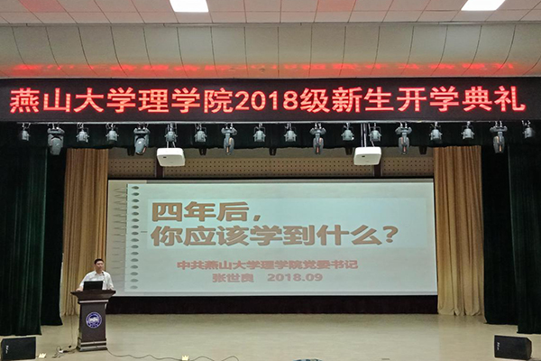 开学典礼在与会师生嘹亮的国歌声中拉开帷幕。随后,刘永院长以“为理想而博,为前途而战,开启人生新征程”为主题,为理学院2018级本硕博434名新同学上了开学第一课。刘永院长向学们介绍了燕山大学和理学院发展的历史改革的路径,专业和学科,科研工作,学科地位和各个专业的就业前景。并向同学们在“学习、做事、做人”方面提出了几点期望,希望大家好好规划自己的大学生活,不要放松对自己梦想的追求。