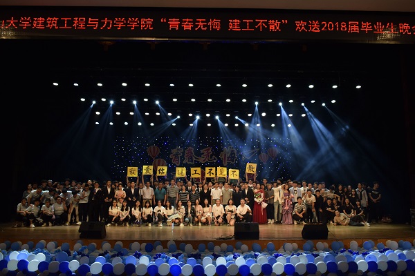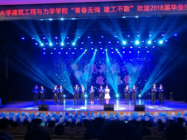 【新闻中心讯】6月14日晚19:00,由建筑工程与力学学院团委主办,建筑工程与力学学院学生会承办的“青春无悔,建工不散”2018届毕业生文艺晚会在东大活109举行。出席此次毕业生晚会的嘉宾有燕山大学副校长黄晟、学生工作处处长张明莉、校团委书记李曦达、学生工作处副处长产佳、学生工作处副处长段磊、招生就业处副处长冯智恩、招生就业处副处长宋晓飞以及建筑工程与力学学院主要领导、各科室教师与学生。
