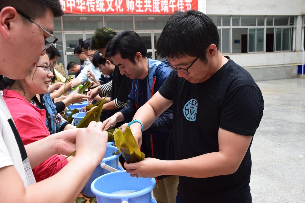 活动以书画展拉开序幕,通过了解端午节的来历、传说故事、习俗活动,欣赏学院师生的字画作品,感受着传统文化的魅力。在动手制作环节,部分师生选择做香包,穿针引线,动作娴熟,一个个香气怡人的香囊很快就完成了。选择包粽子的师生认真学习,气氛热烈,拿起粽叶卷成漏斗状,填米、压紧、扎绳,一只只粽子便在大家的手中诞生。最后还进行了吃粽子比赛,将现场气氛推向高潮。