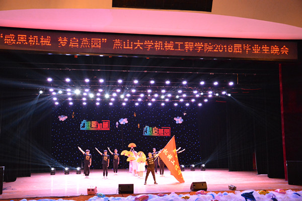 【新闻中心讯】6月19日晚,机械工程学院在东校区大学生活动中心109室举办“感恩机械,梦启燕园”为主题的2018届毕业生文艺晚会。燕山大学副校长孔祥东、赵永生、黄晟、赵丁选,学生工作处处长张明莉,学生工作处副处长产佳、段磊,校团委书记李曦达,副书记张杨,校友办副主任柯铁军,机械工程学院院长张立杰、党委书记蔡星周、副院长金淼、党委副书记郝海滨以及学院各系部教师和全体辅导员出席了本次晚会。