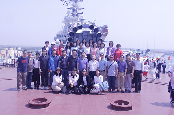 在航母主题教育基地,通过身临“基辅号”,联想到“辽宁号”和刚刚结束海试的国产航母,大家深切感受到强大的国防对于一个国家的重要性。