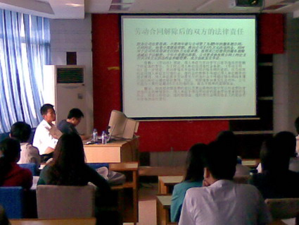 【新闻中心讯】为增强学生就业法律观念,提高自我保护意识,5月30日下午2:30,信息学院邀请我校文法学院的袁建刚老师为学院全体学生进行了劳动就业法律知识讲座。
