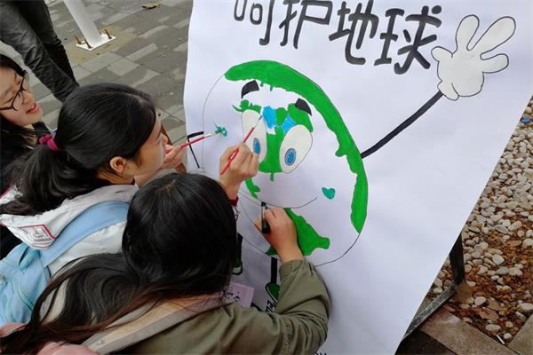 同学们参与彩绘地球的活动