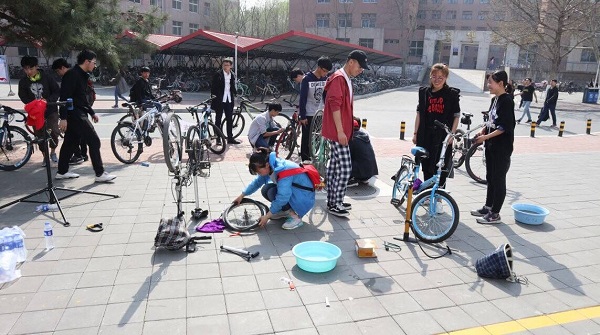 【新闻中心讯】2018年4月19日,由建筑工程与力学学院团委主办、燕山大学自行车协会承办的“公益修车”活动在燕山大学东西校区如期开展。参加此次活动的同学络绎不不绝,场面十分盛大。