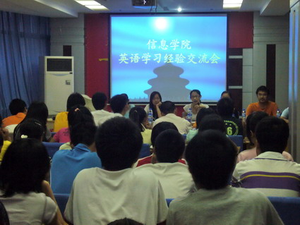 为培养学习英语的兴趣,提高同学们的英语水平,营造良好的英语学习气氛,激烈同学们向获奖同学学习。6月16日晚7点,信息学院英语学习经验交流会在信息馆401举行。为同学们介绍学习经验的是来自信息学院05、06、07三个年级参加全国大学生英语竞赛获奖的6位同学。