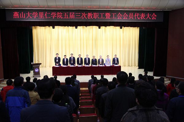 、【新闻中心讯】2018年3月29日下午,燕山大学里仁学院五届三次教职工暨工会会员代表大会在西校区大学生活动中心报告厅隆重开幕。燕山大学副校长赵永生和学院领导班子成员在主席台上就座。开幕式由学院党委副书记、副院长尚雪梅主持。