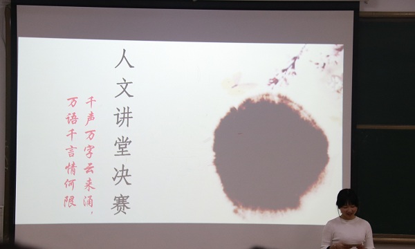 经历了初赛第一轮和第二轮的激烈角逐,共有6名选手进入了决赛。人文讲堂决赛过程中,选手们在严格规定的15分钟内都有精彩的讲课,充分展示了选手广博的学识和授课功底,同时也彰显了当代大学生积极向上的良好精神风貌。内容涉及到了上古十大神兽、从丝绸之路起点开始走进陕西人文、中国女词人及宋词的魅力、国画的精髓、民间传统手工艺——蛋画和王阳明与龙场悟道等方面,体现了丰富的人文内涵。选手们重点突出,条理清晰,讲授生动,并且运用音频、视频等多媒体手段使课堂活跃有趣,充分展现了现代教学的特点。活动还设置了中场环节,进行人文知识抢答,同学和老师们积极参与,现场气氛活跃,趣味性与知识性并存。最后文学与新闻传播学系主任王永老师针对选手们的讲课情况作出点评并提出了宝贵意见。