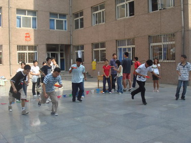 当天秋高气爽,同学们也都热情高涨。比赛于上午9时在六舍天井准时开始。08级全体新生在班主任的带领下以每个班级为一个代表队有秩序的依次进行各项比赛。比赛共分为两个环节,第一环节为趣味竞赛,第二环节为友谊赛。在第一环节由带球行进、十米长绳和万众一心三个项目组成。带球行进中,同学们用乒乓球拍托住一个乒乓球完成三个回合的接力,并在接力时回答趣味智力问题,场上的同学表现得沉着却又紧驰有度,场下的同学们更是紧张又激动的大声加油;十米长绳是由两名同学绕绳,七名同学一起跳上绕动的长绳开始计数,比赛考验了大家的配合意识和坚持不懈的精神,同学们表现突出,最多的一组更是跳出了58个的好成绩;万众一心即十名同学双手交叉连成一个圈,大家同时坐在地上再同时站起,这更需要每一个人的协作。在第二环节的友谊赛中,各班之间进行了一场拔河比赛,班主任也都参与其中,随着一声声震天的口号,将比赛推向了高潮。最后,旅游管理3班、公共事业专业和国际贸易2班分获前三名。