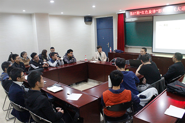 【新闻中心讯】11月10日晚7:30,由马克思主义学院主办,校团委、里仁学院协办,马克思主义研究会承办的第五十七期“红色旋律”影苑在我校人文馆502举行。本期影苑以“大道之行”为主题,王玉荣、魏忠强、王建洲老师分别对《钱学森》、《杨善洲》、《忠诚与背叛》三部影片进行了点评。